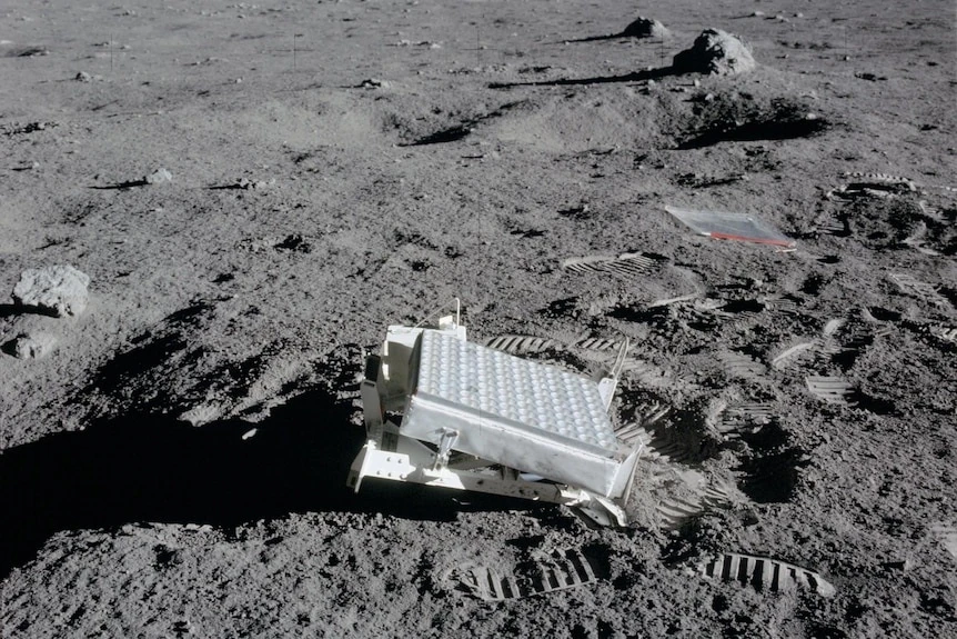 Trong số năm tấm gương phản chiếu trên Mặt Trăng, có hai tấm được phi hành đoàn Apollo 11 và 14 đặt ở đây vào các năm 1969 và 1971 (Ảnh: NASA).