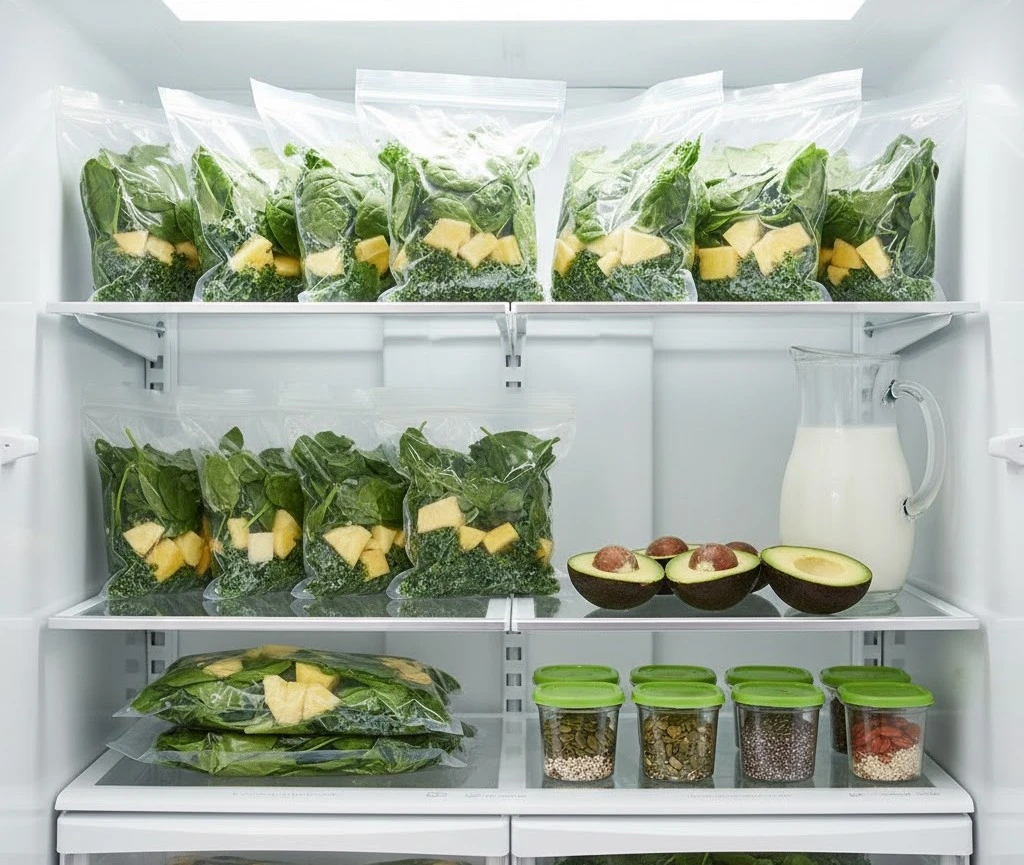 Chuẩn bị sẵn nguyên liệu cho cả tuần là yếu tố then chốt giúp duy trì thói quen uống sinh tố xanh. Khi rau và trái cây đã được lên kế hoạch mua sắm , sơ chế và bảo quản trước, việc pha sinh tố mỗi sáng chỉ mất vài phút, nhờ đó hạn chế bỏ dở thói quen.