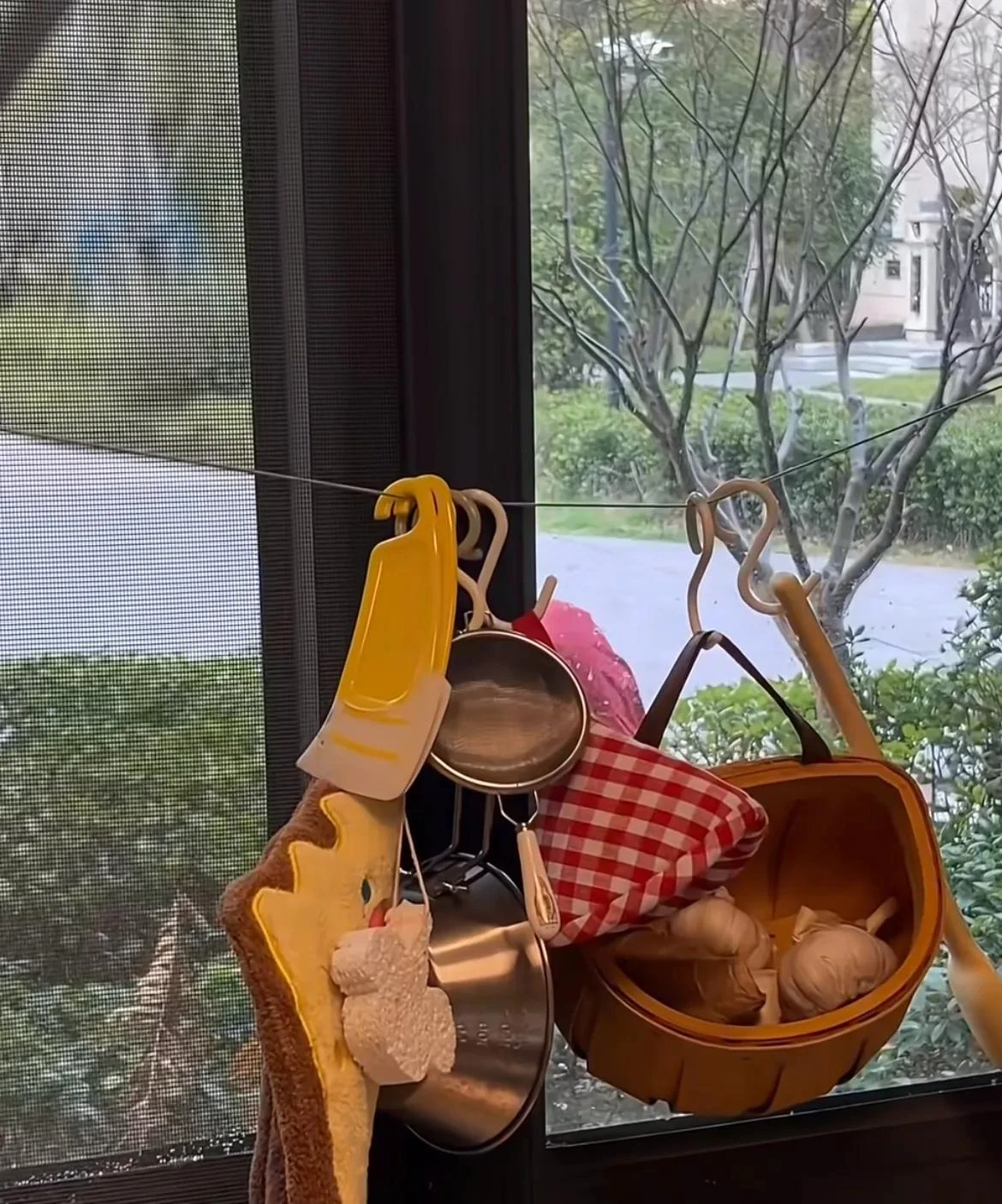 Ảnh quảng cáo trên mạng trông rất bắt mắt: vài món đồ nhẹ treo hờ hững, tạo cảm giác nghệ thuật. Nhưng khi dùng thực tế lại khác hẳn. Chỉ cần treo hơi nặng, tất cả đồ sẽ dồn về giữa, rối tung cả dây. Nhìn từ xa chẳng khác gì sợi dây phơi tạm bợ. Thêm nữa, ảnh mạng thường treo vài món trang trí nhỏ xinh, còn thực tế sử dụng lại là giẻ lau, khăn bếp… khiến không gian càng thêm bừa bộn. Thay vì phí tiền cho món này, nên chọn giá treo hoặc kệ gắn tường nhỏ gọn – vừa tiện dụng vừa giữ được thẩm mỹ.