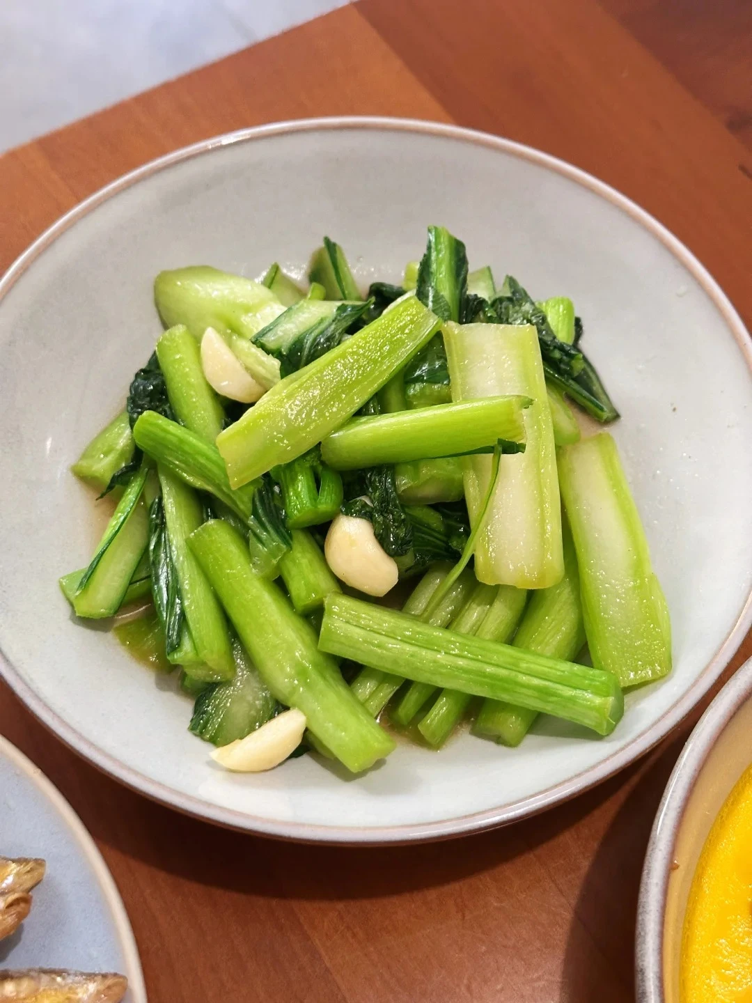 Cuối cùng, để mâm cơm tròn vị và đủ chất xơ, một đĩa rau cải ngọt xào tỏi đơn giản là mảnh ghép hoàn hảo. Rau cải xanh mướt, giòn ngọt giúp cân bằng lại vị giác sau những món đạm, giúp bữa ăn trở nên nhẹ nhàng và thanh cảnh hơn.