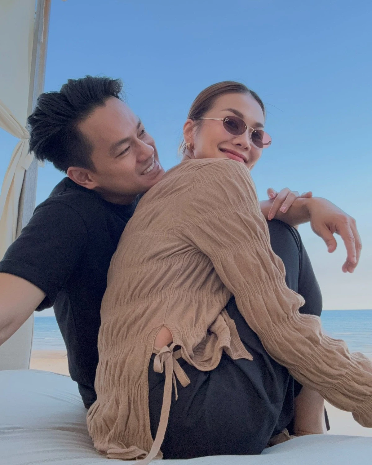 Vợ chồng siêu mẫu Thanh Hằng tình thương mến thương khi ngắm biển. Dù bận rộn, cặp đôi thường dành thời gian cho những chuyến hẹn hò.