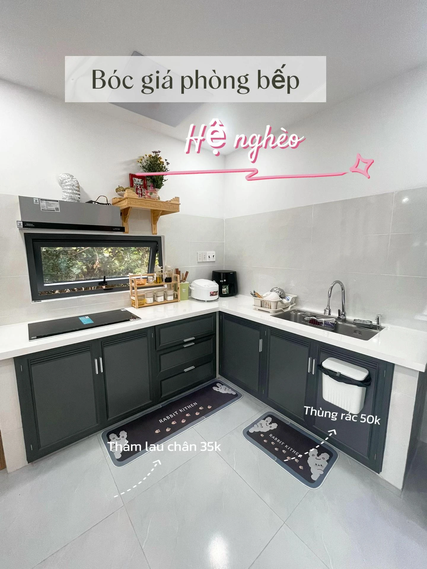 Căn bếp “hệ nghèo” nhưng sang không tưởng: Toàn đồ vài chục nghìn mà sạch như khách sạn