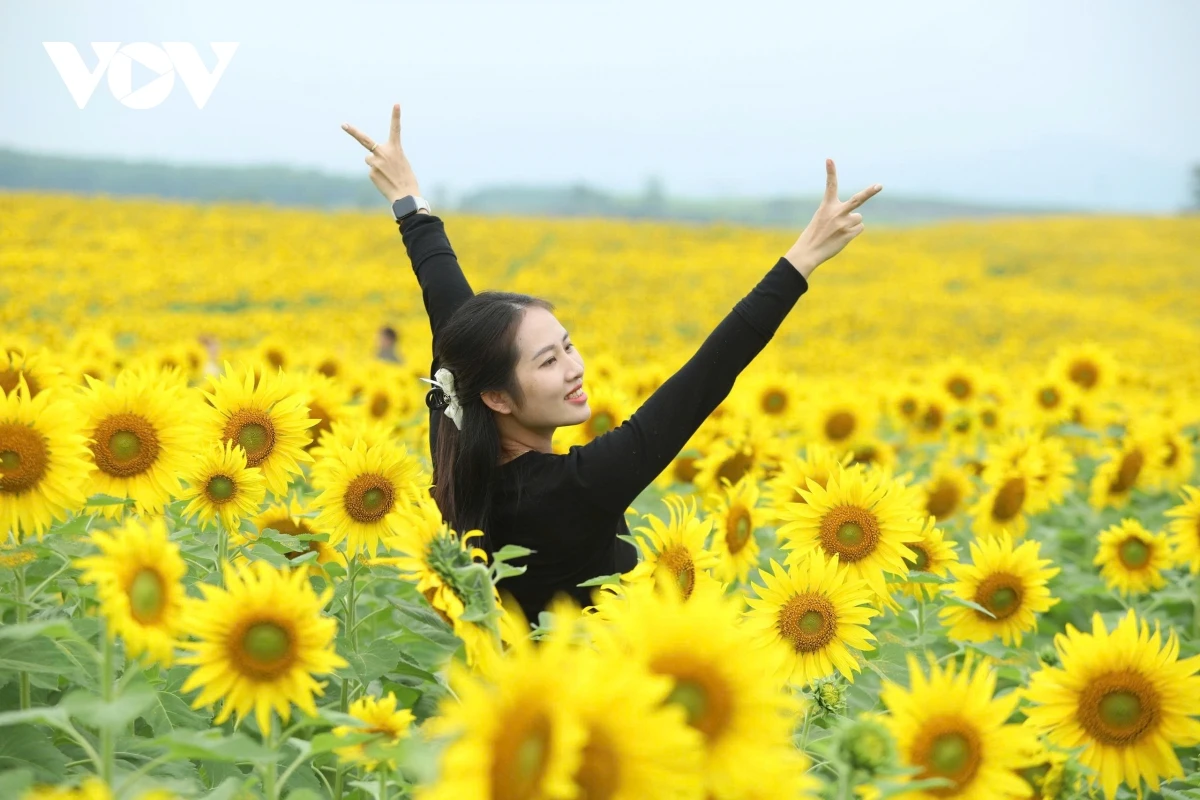 Du khách đến với cánh đồng hoa hướng dương Phủ Quỳ