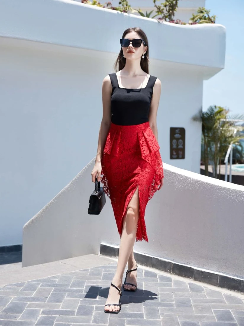 Chân váy ren bèo nhún xếp tầng không chỉ mang lại vẻ ngoài điệu đà mà còn là “vũ khí” bí mật giúp phái đẹp khéo léo tôn vinh đường cong