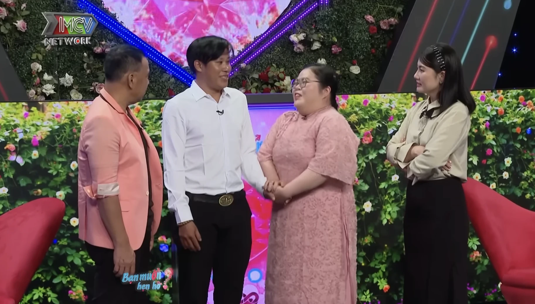 Hai MC vui mừng khi mai mối thành công cho cặp đôi . Ảnh: Chụp màn hình