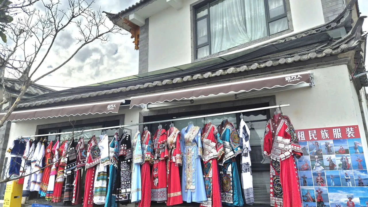 Trang phục các dân tộc địa phương được bày bán trên phố