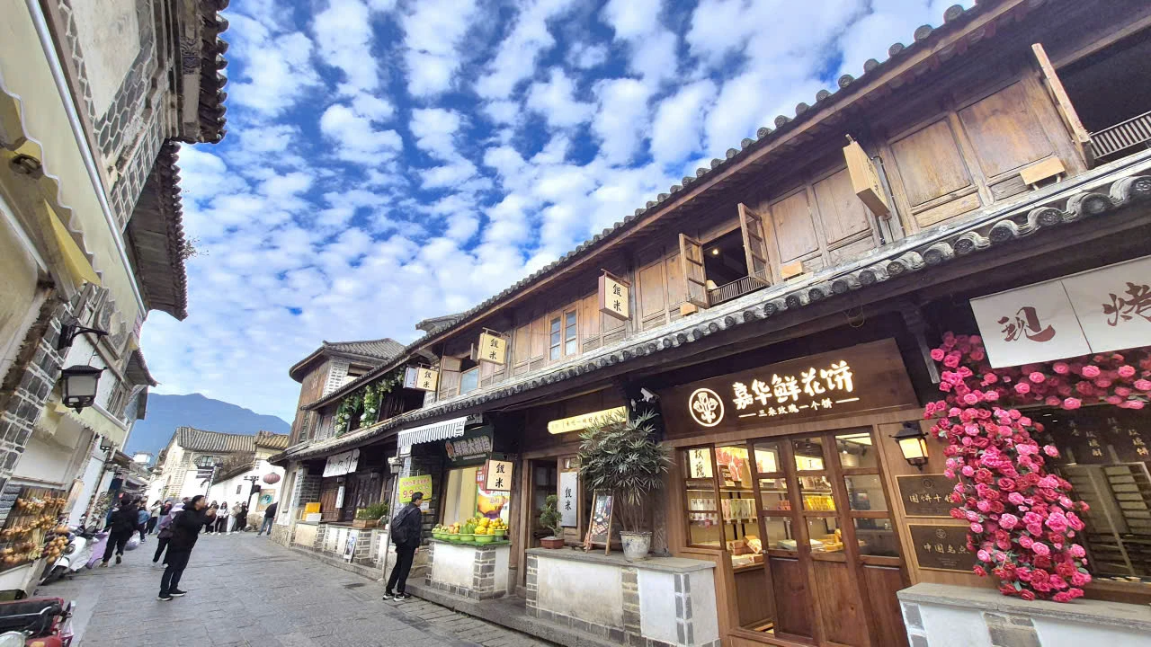 Dọc theo những con phố lát đá xanh, du khách sẽ chiêm ngưỡng những ngôi nhà gỗ truyền thống được xây dựng theo phong cách “Tam phòng nhất chiếu bích” (Ba ngôi nhà vây quanh một bức tường bình phong).