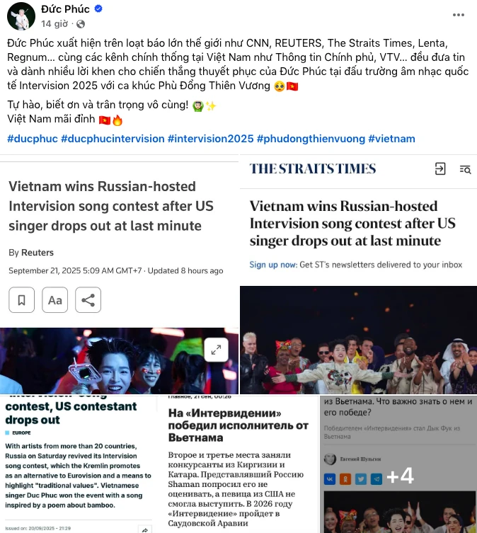 Chiến thắng của Đức Phúc tại Intervision 2025 được truyền thông quốc tế đồng loạt đưa tin với nhiều phản hồi tích cực