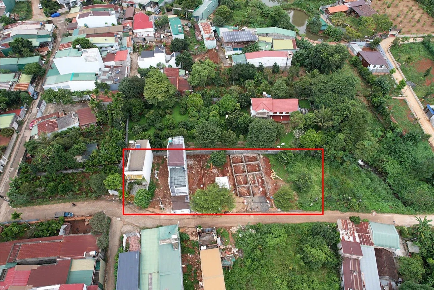 Theo ghi nhận, ngoài một căn nhà đã được đưa vào sử dụng mấy năm nay, một căn đang hoàn thiện, bên dưới có nhà đang tiếp tục xây móng.