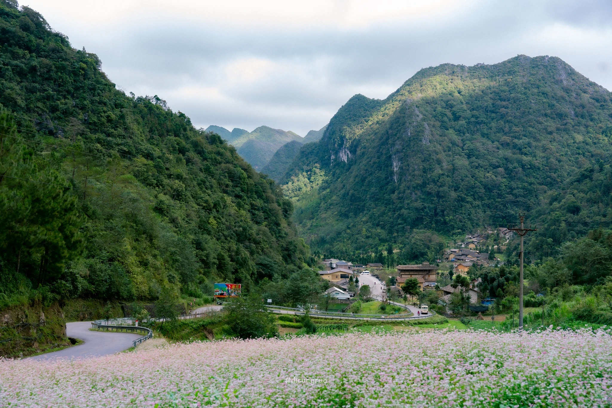 Khi “sức sống hồi sinh”, những cung đường phượt Hà Giang như được nhuộm hồng, thơ đến lạ kì. Nguồn ảnh: Hoàng Hiếu – Đi cùng Rùa