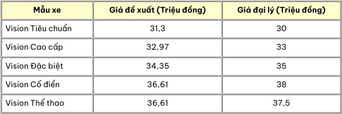 Giá xe Honda Vision tại đại lý.