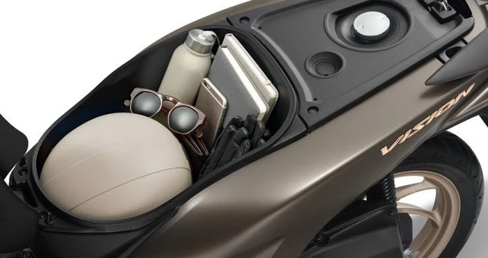 Khung dập hàn laser thế hệ mới eSAF nhẹ nhưng bền, cho cảm giác lái linh hoạt và vững vàng. Ngoài ra, Vision còn ghi điểm với hộc đựng đồ phía trước rộng rãi tích hợp cổng sạc USB Type-C tiện lợi - một điểm cộng lớn trong kỷ nguyên số. Hộc chứa đồ chính có thể để vừa mũ bảo hiểm cùng nhiều vật dụng cá nhân, đáp ứng tốt nhu cầu hàng ngày.