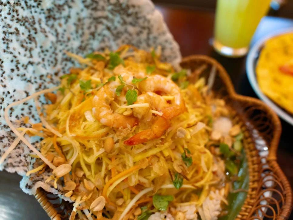 Trên bàn có món cuốn tôm thịt, đây là “một món ăn quen thuộc tôi thường ăn ở một nhà hàng Việt Nam tại Hàn Quốc” nhưng chỉ khi ăn tại Việt Nam, anh mới cảm nhận được độ tươi ngon của rau, tôm, thịt hòa quyện với nước chấm chua ngọt đặc biệt.