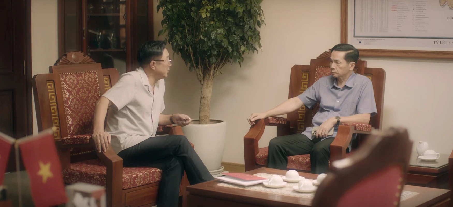 Cùng lúc, Triển (Mạnh Trường) được mời đến nhà Viện phó Bùi Hằng Thu và chồng dùng bữa. Bữa rượu tưởng thân mật hóa ra lại là cuộc trao đổi kín xoay quanh hồ sơ dự án Đông Phong – nơi được cho là có dấu hiệu tác động trong khâu phê duyệt. Khi Hằng Thu đặt nghi vấn: “Hồ sơ được duyệt quá nhanh, như thể có bàn tay phía sau”, Triển chỉ mỉm cười đáp: “Bà lại thuyết âm mưu rồi. Lợi ích nhóm hay không, cứ để cơ quan có thẩm quyền kết luận”. Cuộc đối thoại nhẹ nhàng mà đầy ẩn ý, hé mở dấu hiệu Đông Phong sẽ trở thành tâm điểm trong những tập kế tiếp.