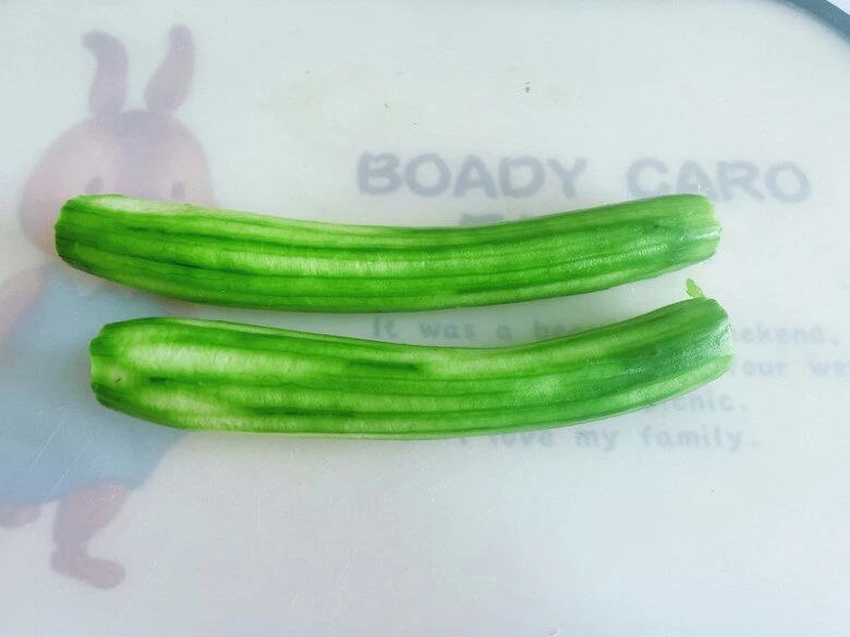 Mướp mua về rửa sạch, gọt bỏ vỏ ngoài và hai đầu.
