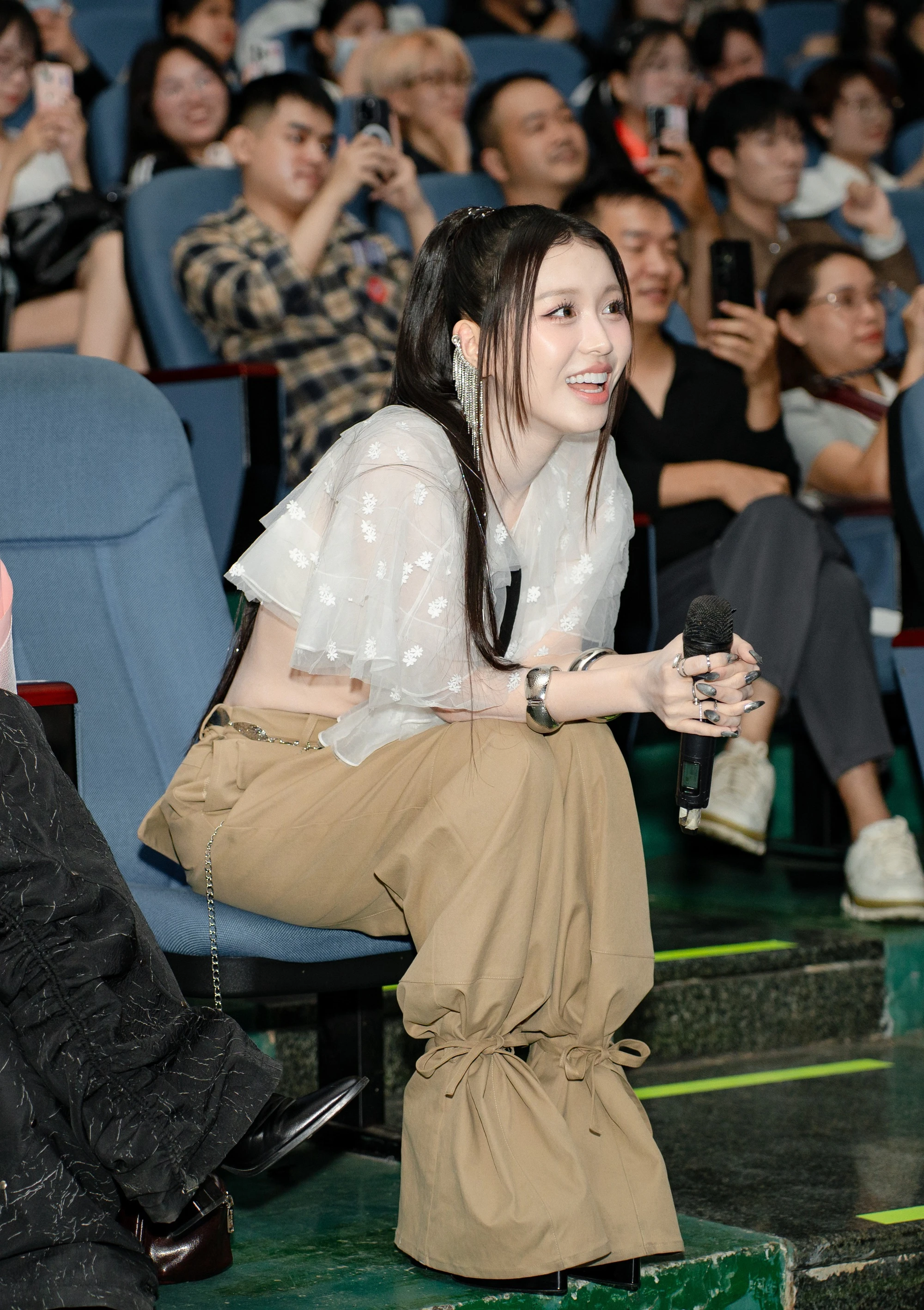 Xuất hiện tại fanmeeting, Han Sara gây ấn tượng với visual ngày càng thăng hạng. Nữ ca sĩ lựa chọn layout trang điểm trong trẻ o, kết hợp kiểu tóc buộc cao cá tính và outfit crop-top tinh tế, tôn trọn vòng eo con kiến. Ánh sáng sân khấu và phong thái biểu diễn tự tin càng khiến vẻ ngoài của cô trở nên rạng rỡ và cuốn hút hơn.