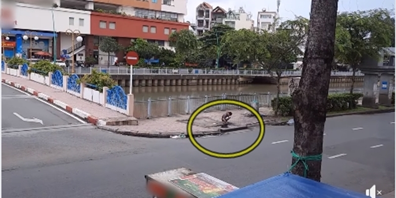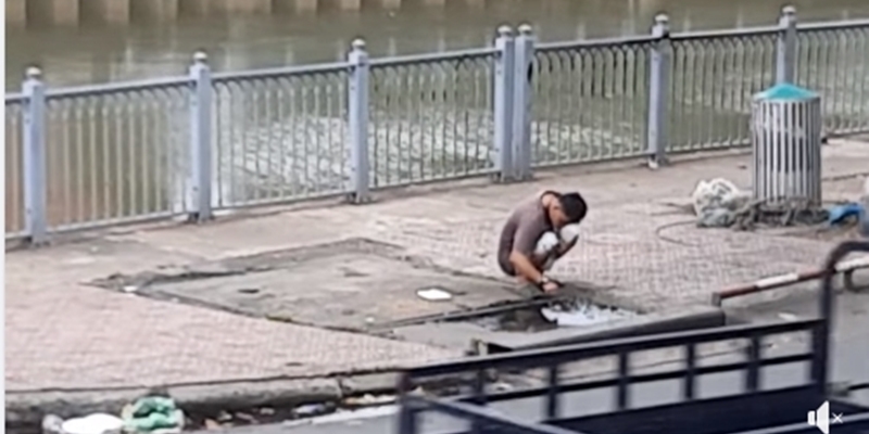 Mới đây, trên mạng xã hội xuất hiện hình ảnh một người đàn ông lúi húi bên cống thoát nước. Thời điểm đó, xung quanh khá vắng vẻ.