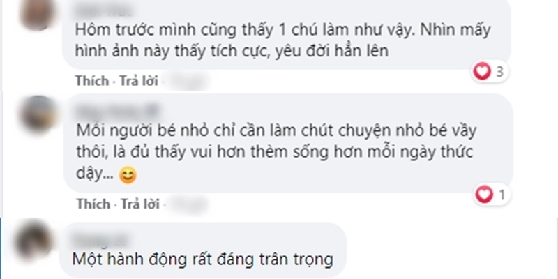 Anh đã gửi lời cảm ơn người đàn ông nói trên: “Cảm ơn chú nhé. Sài Gòn đẹp hơn là nhờ sự đóng góp của những cá nhân như chú đấy ạ” . Qua những câu chữ tràn ngập sự biết ơn và thái độ tôn trọng mà anh H.H.L dành cho người đàn ông, có thể chắc chắn rằng hành động nhỏ bé nhưng văn minh của chú đã trở thành một điểm sáng trong ngày hôm ấy đối với anh. Và hẳn chú cũng không ngờ rằng việc làm một cách rất vô tư của mình sẽ khiến ai đó cảm thấy trân trọng đến vậy.