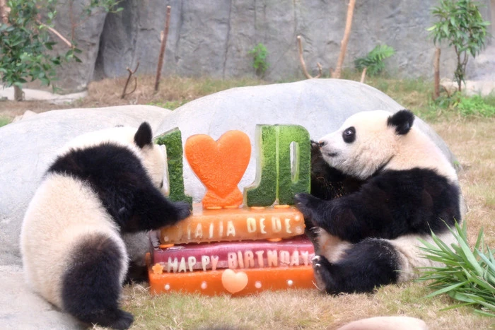 Điểm nhấn đặc biệt trong năm 2025 là việc kỷ niệm sinh nhật đầu tiên của cặp gấu trúc song sinh đáng yêu, Jia Jia và De De. Cặp gấu trúc này được sinh ra vào ngày 15/8/2024, đánh dấu một sự kiện lịch sử khi chúng là cặp gấu trúc đầu tiên được sinh ra tại Hong Kong. Đặc biệt hơn, mẹ của chúng, Ying Ying, đã trở thành gấu trúc mẹ lớn tuổi nhất sinh sản thành công trên thế giới.