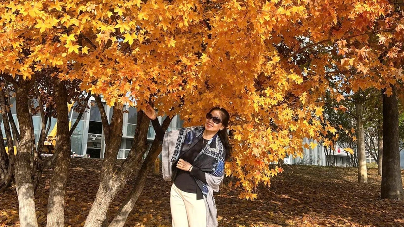 Du khách Việt Nam thích thú khi trải nghiệm mùa thu tại Trung Quốc.