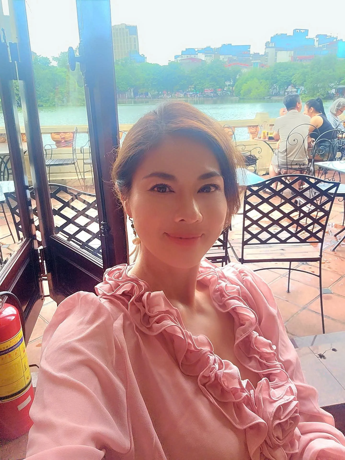 Ca sĩ Hồ Lệ Thu tận hưởng không khí mát mẻ ở Hồ Gươm.
