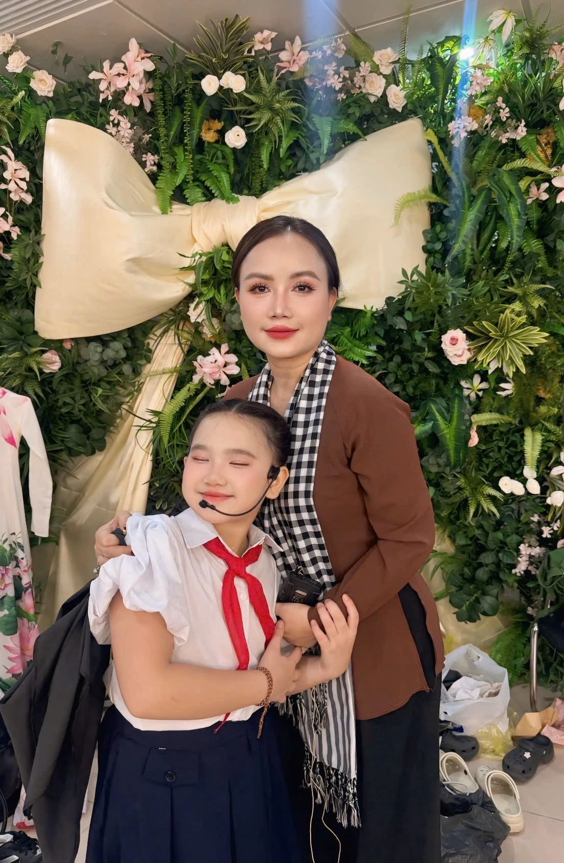 Diễn viên Hoàng Yến và con gái cùng nhau đi diễn.