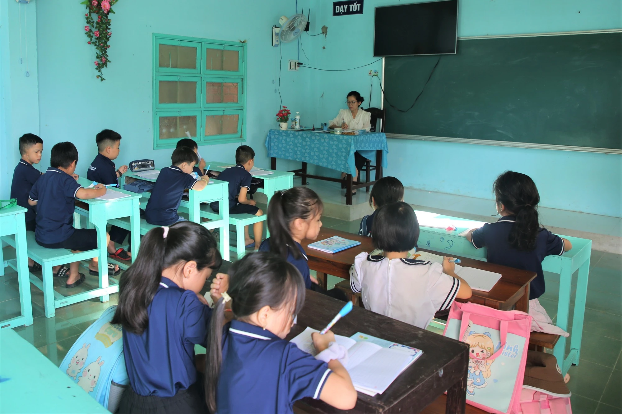 “Từ khi lớp học được trang bị tivi thì thầy cô ở đây đều dạy bằng giáo án điện tử. Nhờ có hình ảnh trực quan, sinh động nên học sinh cũng dễ tiếp nhận kiến thức hơn…”, thầy Lại chia sẻ.