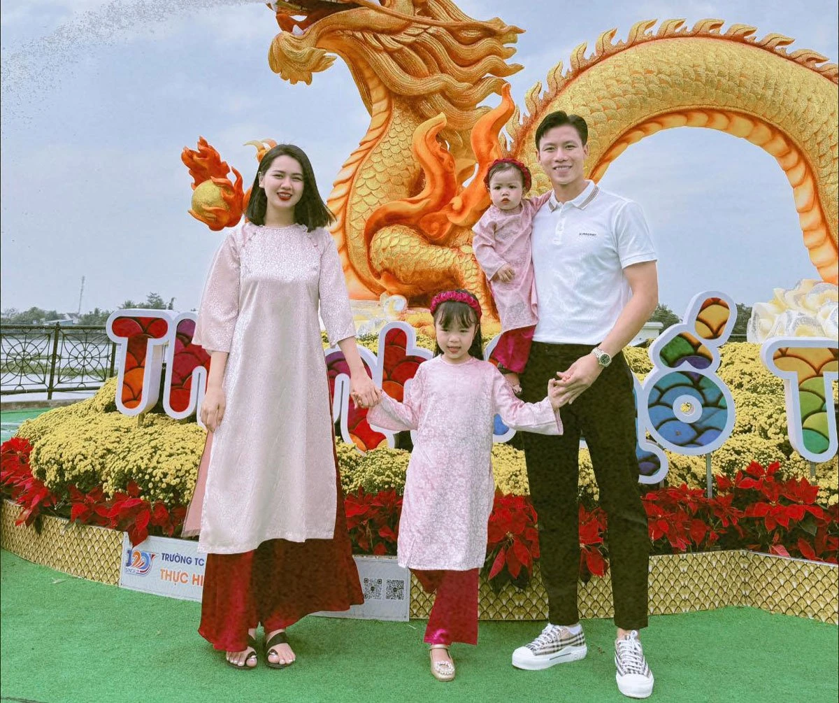 Giống như đàn em, sau khi kết hôn, trung vệ Bùi Tiến Dũng cũng chọn để vợ và con gái ở nhà ngoại và đưa bà nội ở quê ra chăm cháu bởi anh chàng thường xuyên thi đấu và tập luyện xa nhà. Dù lấy chồng nhưng cô nàng Khánh Linh vẫn khiến nhiều chị em phải ghen tị vì luôn được mẹ giúp chăm sóc con gái.