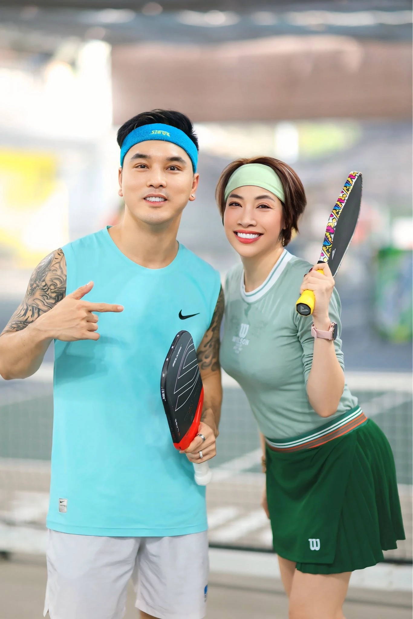 Ca sĩ Ưng Hoàng Phúc và Pha Lê rủ nhau chơi pickleball.