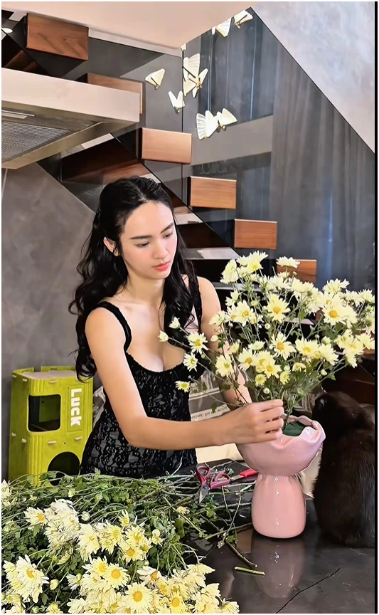 Thời gian gần đây cô thường xuyên chia sẻ hình ảnh, vlogs nấu ăn, cẳm hoa.