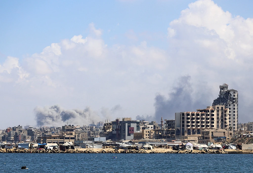 Khói bốc lên từ hướng Israel bắn phá ở phạm vi TP.Gaza hôm 19.9 . ảnh: Reuters